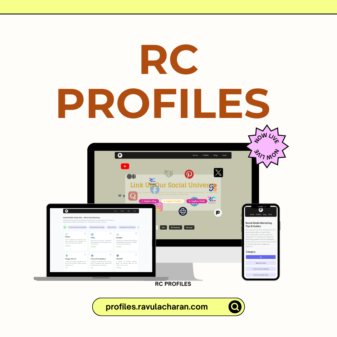 Beyond being a directory, RC Profiles adds value with its dedicated blog section covering social media strategies, marketing insights, and creative growth tips, as well as a tools section featuring curated utilities to help you manage and enhance your online presence. Whether you’re part of the RC ecosystem, a fan of RC products, or simply looking for social media knowledge and resources, RC Profiles connects you with the right people, platforms, and tools — all in one place.