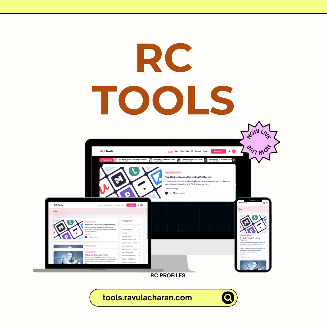 RC Tools is your all-in-one destination for discovering, exploring, and accessing powerful online tools and resources. Whether you’re a web developer searching for code utilities, a designer in need of creative assets, a marketer looking for analytics solutions, or an entrepreneur seeking business productivity tools — RC Tools has you covered.