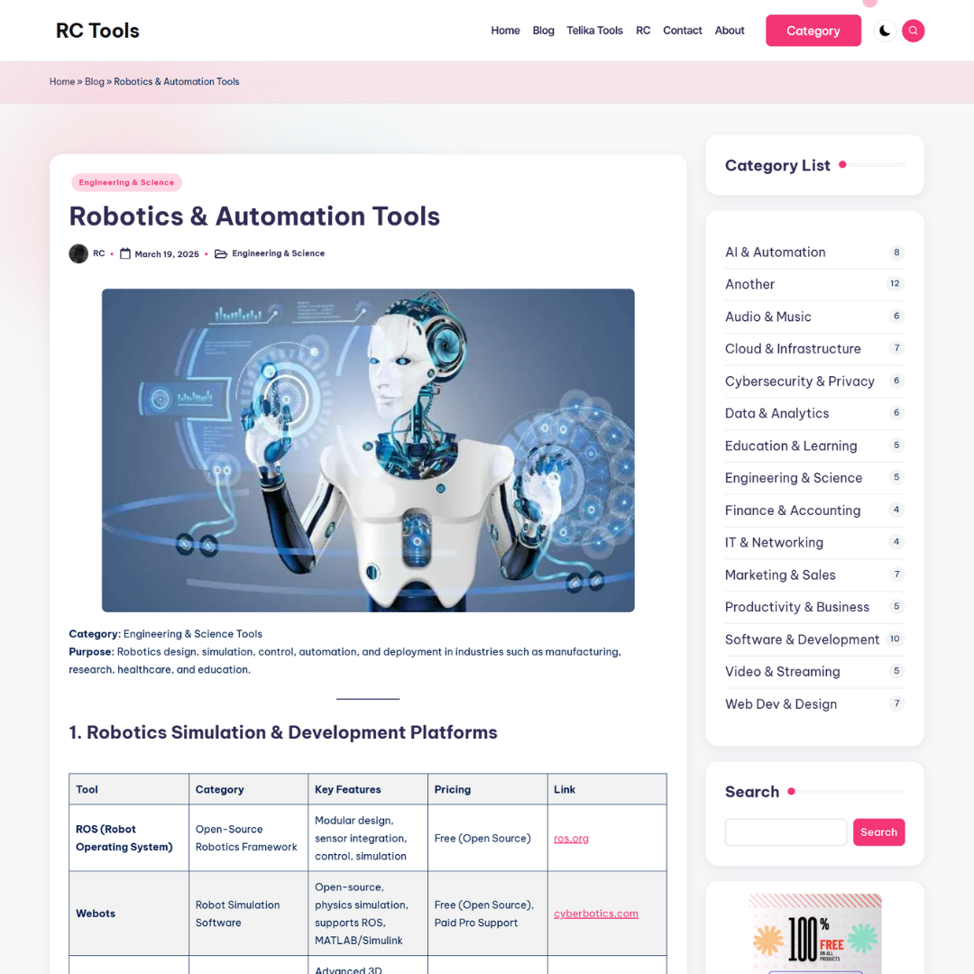 Each category is thoughtfully organized, featuring both free and premium options, so users can quickly find exactly what they need without wasting time. With regularly updated listings, detailed descriptions, and easy navigation, RC Tools is built to save you time, improve workflow efficiency, and keep you ahead in the digital game.
